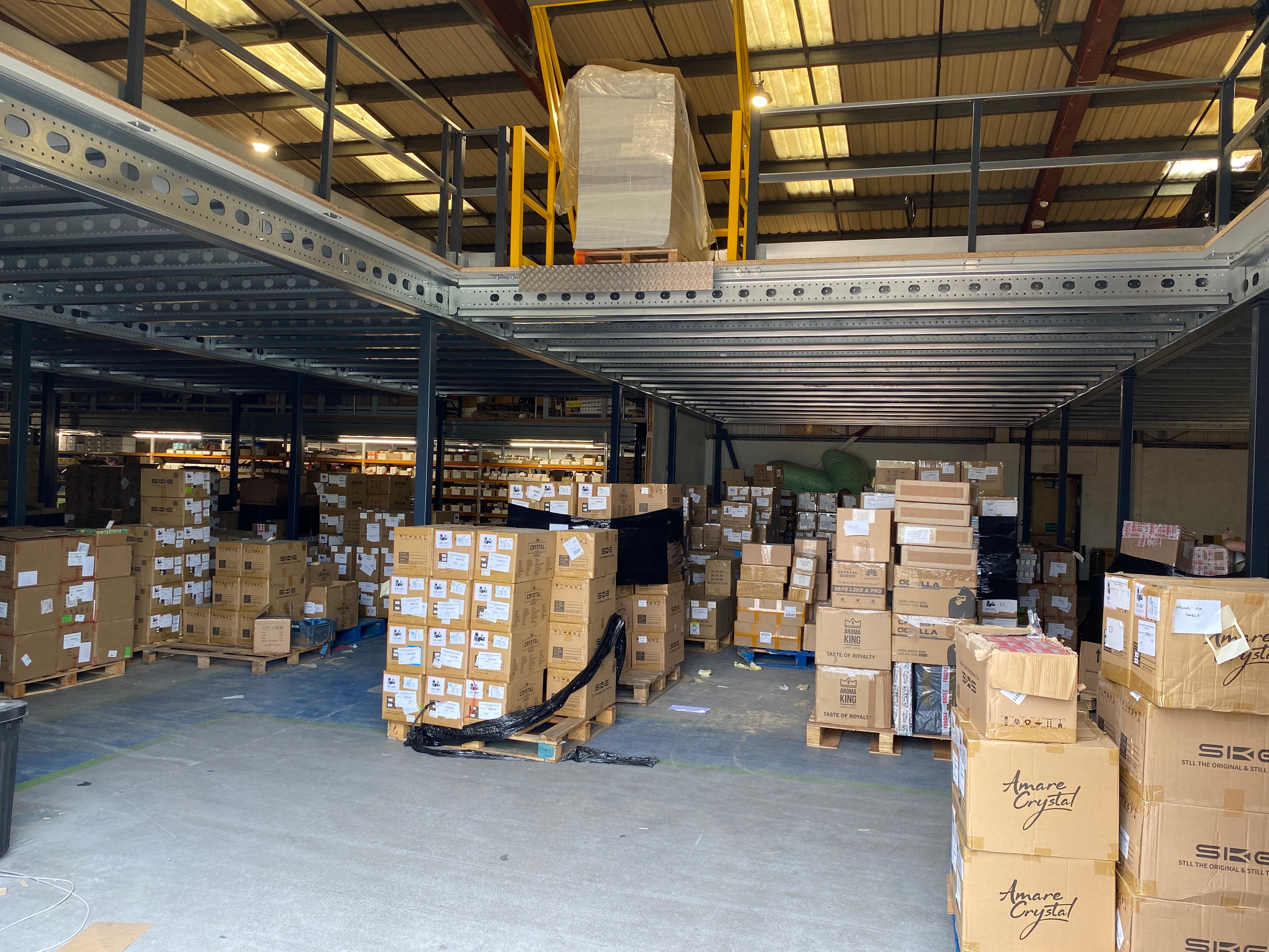 Flawless Vapes needed to add additional stock to their ever growing operation. The installation of a mezzanine floor was perfect to add this extra space. The removal of their existing pallet racking and installation of a new mezzanine floor achieved this for the client for additional pallet storage and picking area.