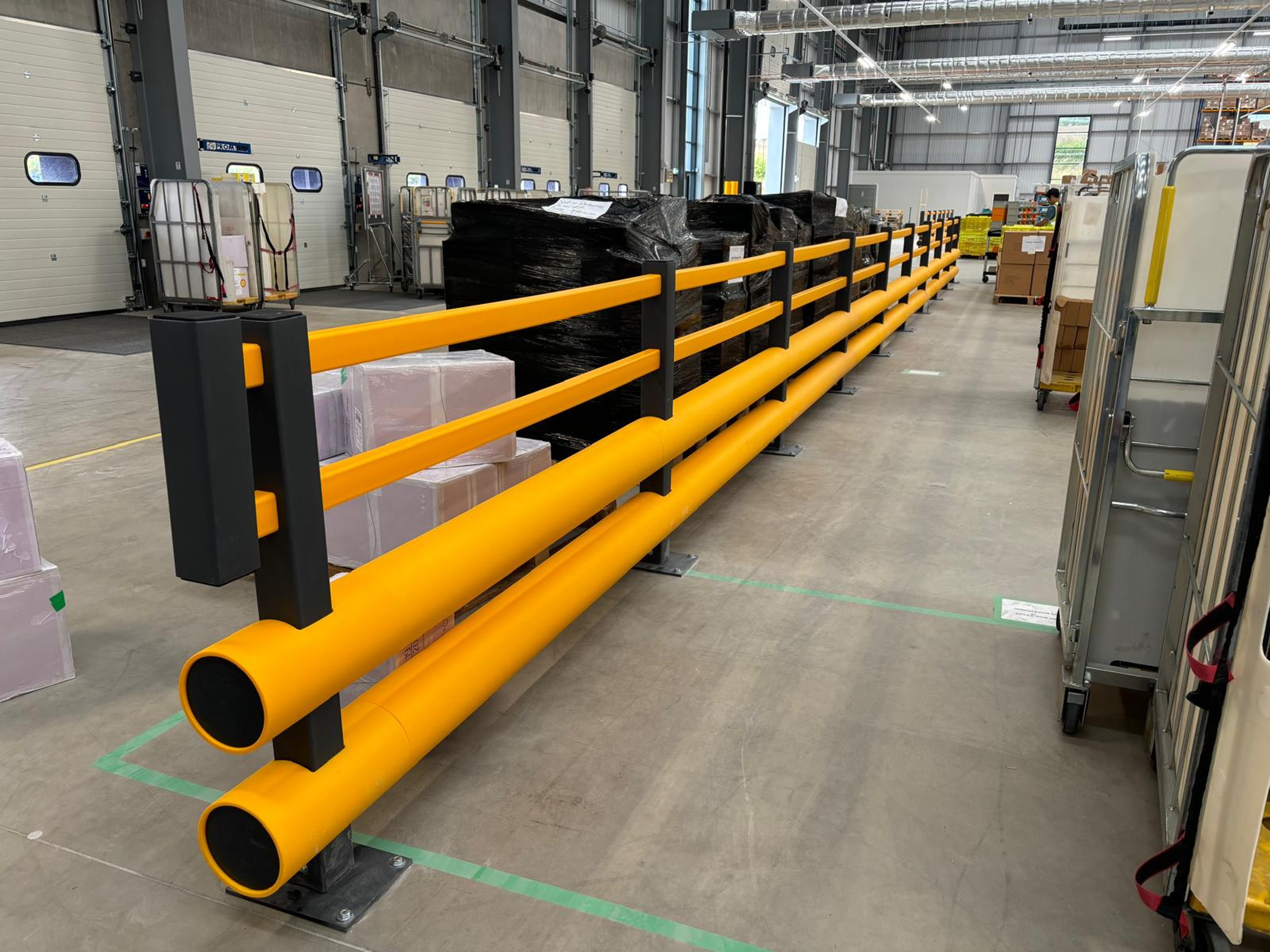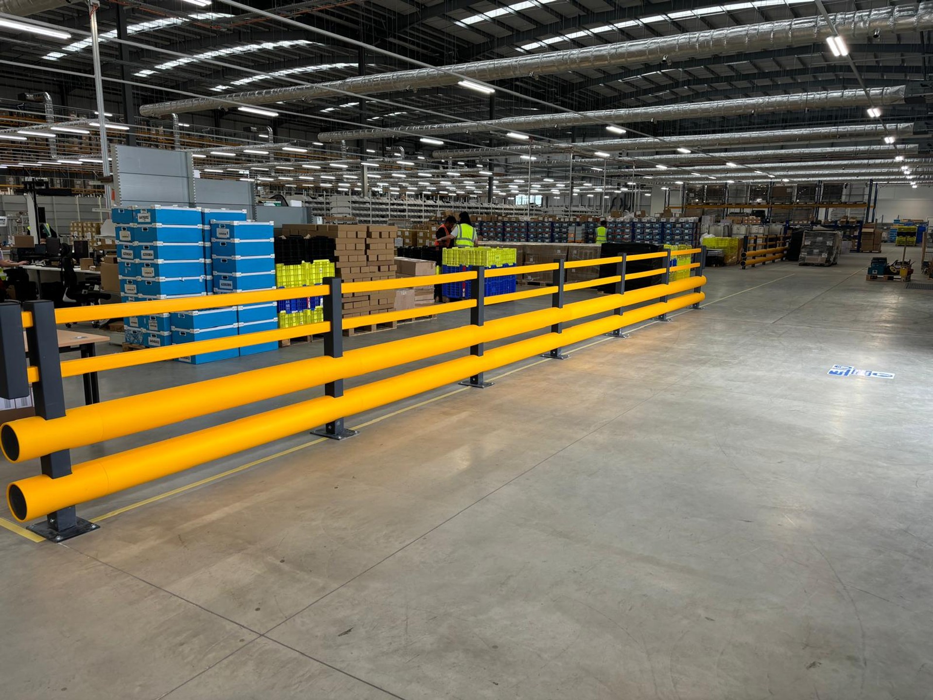 The installation of mesh partitioning & safety barriers being implemented into the clients new warehouse kept the members of staff safe from the on site fork lift trucks and made the designated walking route easily accessible to keep all members of staff safe.