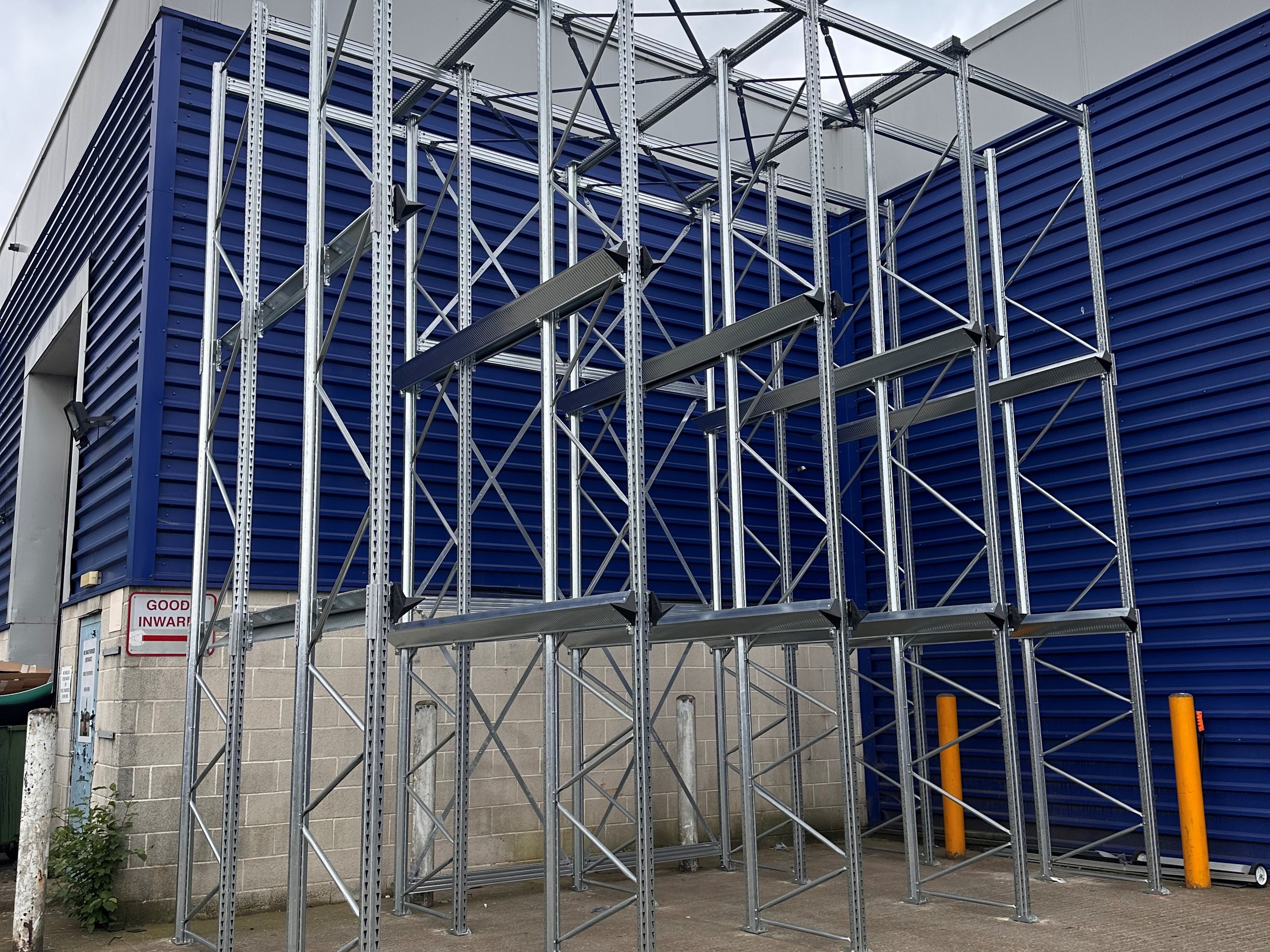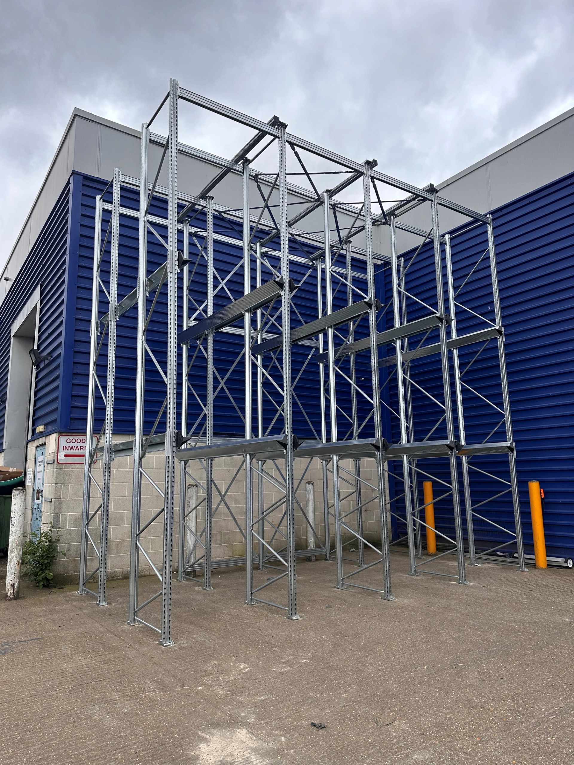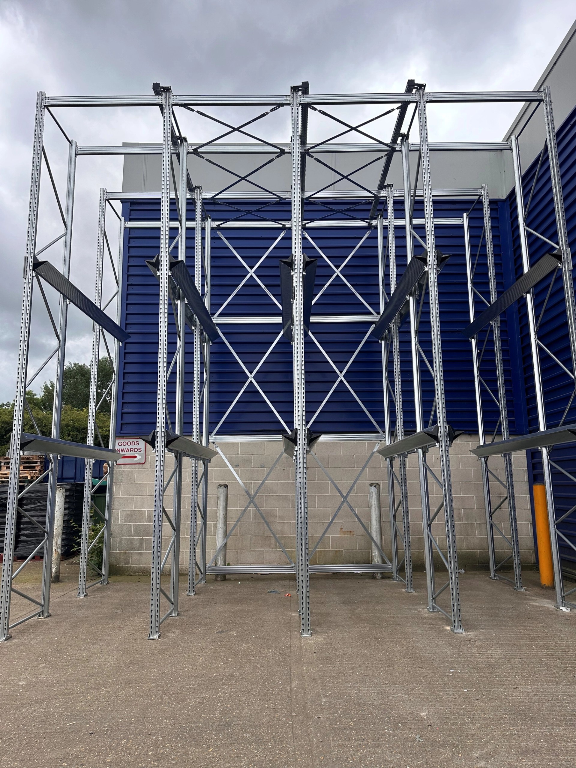 We recently completed the installation of an external drive-in pallet racking system for a show stand manufacturer, designed to streamline their logistics and storage operations. The system allows the client to store and check goods on pallets efficiently upon arrival, prior to transferring them into their main warehouse for final distribution to the relevant locations.