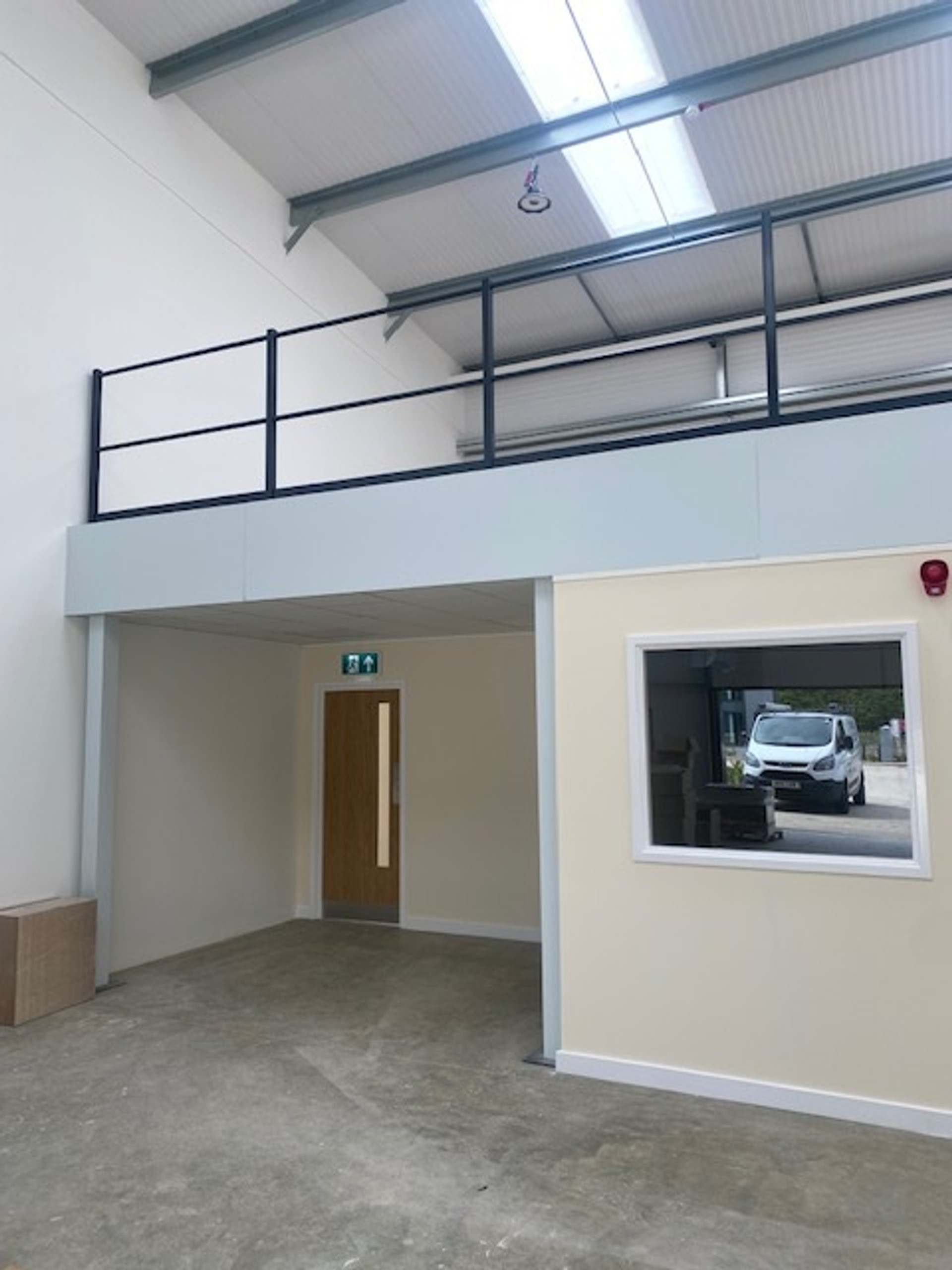 Survey Hire UK moved into a shell of a unit and tasked Storage Concepts to design and install their mezzanine floor, fire rating, office partitioning, lighting, electrics, air conditioning, fresh air, ventilation, carpet & flooring, toilets, showers, plumbing works, kitchen & breakout area.