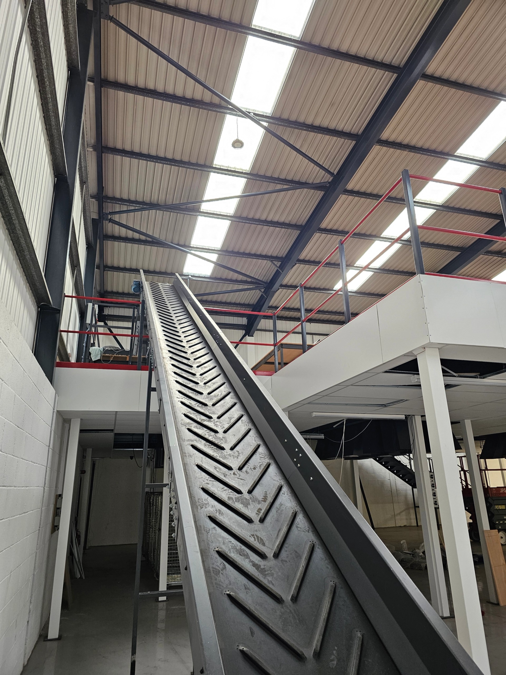 We also made a cut out in the mezzanine floor to accommodate a conveyor system.